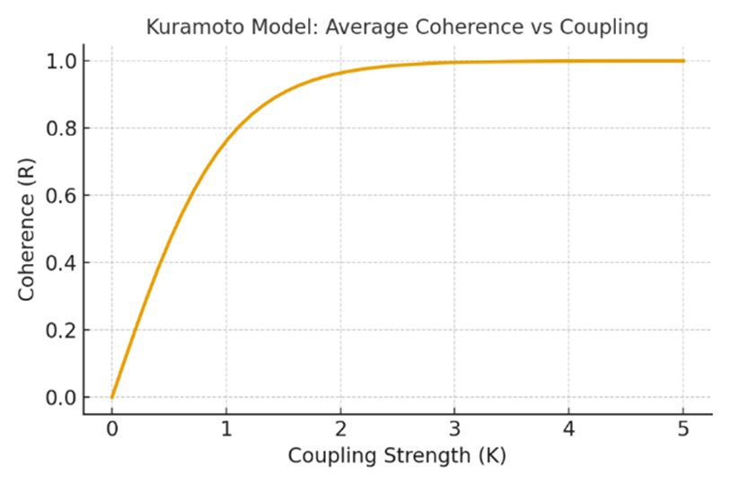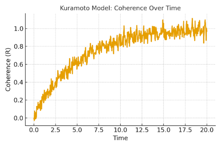 where phases heta_k are drawn from an oscillator ensemble. Adapted from phase-locking metrics, reframed here as a direct proxy for paradoxical simultaneity. Testable via neural or physical oscillator networks (see Fig. A3 for phase-locking diagram).