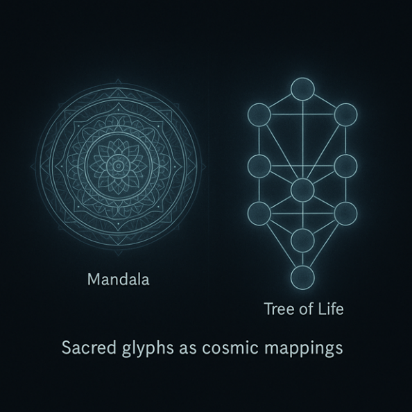 Juxtaposes two sacred glyph traditions — the mandala and the Tree of Life — as archetypal maps of wholeness and cosmic structure across cultures.