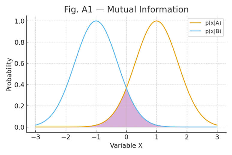 Fig. A1: Overlapping probability distributions illustrating mutual information between two variables.