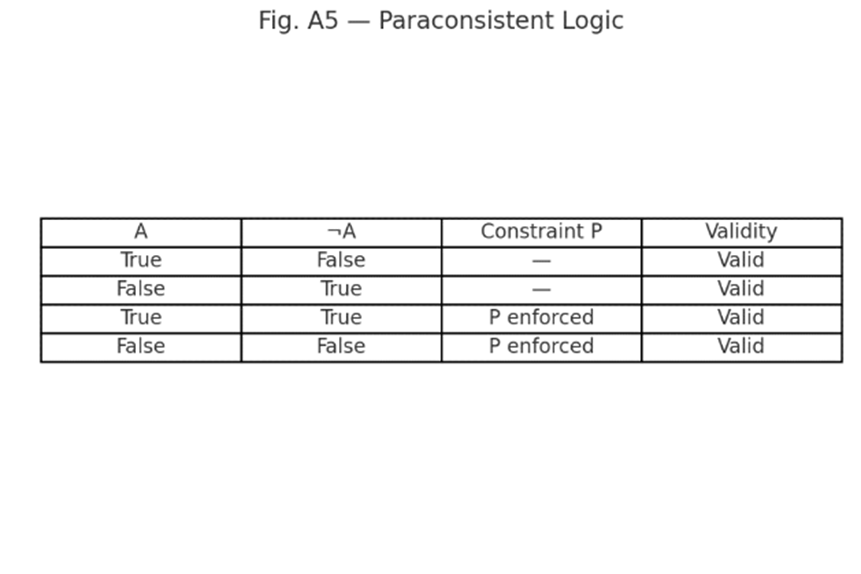 Fig. A5: Variant truth-table diagram demonstrating paraconsistent logic under paradoxical constraint P.